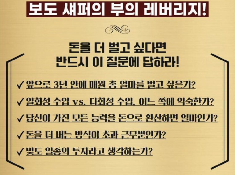 이번시간에는 경제적 자유를 얻기 위한 부의 레버리지 방법 에 대해 알아 보았습니다.