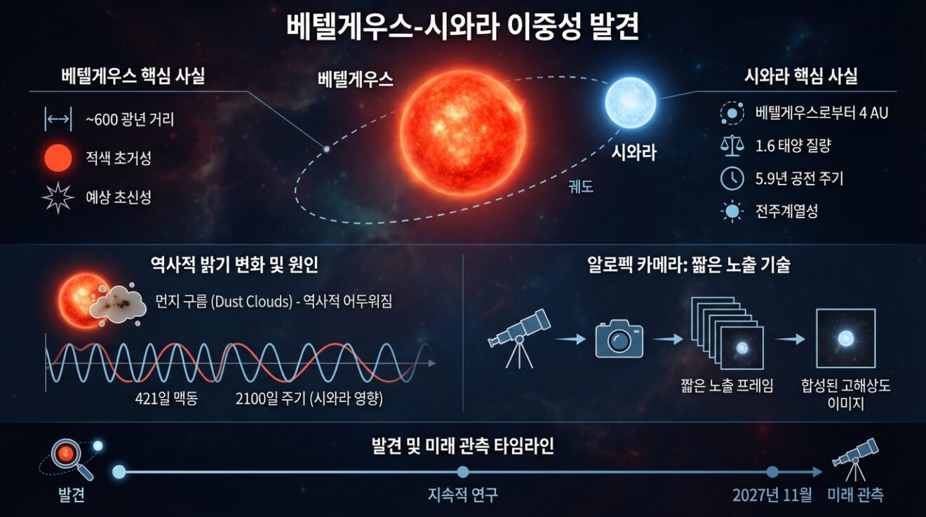 베텔게우스가 외로운 붉은 거성이라고요? 놀랍게도, 그 옆에는 푸른빛 어린 동반성 '시와라'가 있었습니다! 🌌